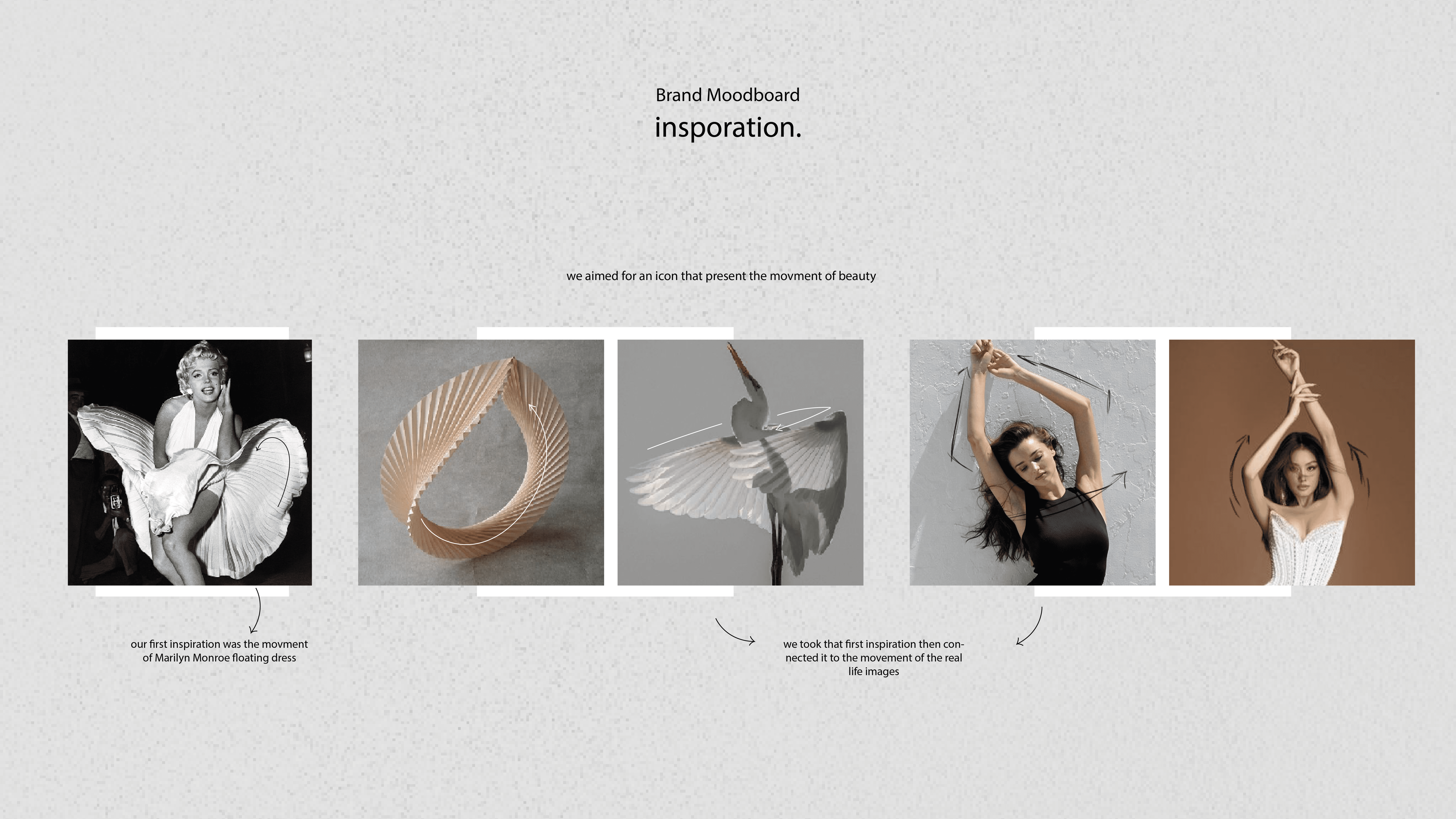 İlk ilhamımız, Marilyn Monroe'nun elbiselerinin dalgalanmasıydı; bu ilk ilhamı aldıktan sonra onu gerçek hayattan akıcı estetik hareketlerle birleştirdik.
